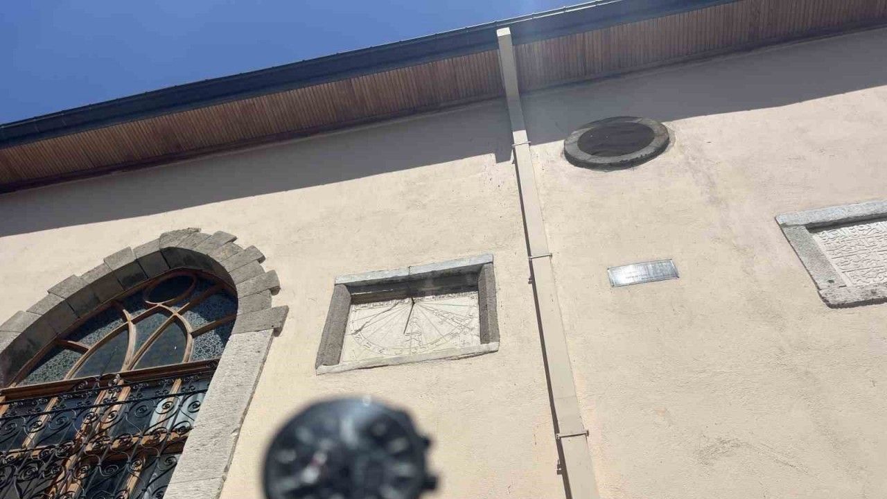 Güneş saatinin çalışması hakkında bilgi veren Dr. İsmail Kuğu, "Bu yapının en önemli unsurlarından bir tanesi yapının Anadolu’daki en eski güneş saatine ev sahipliği yapması, bu noktada çok önemli. Bahsettiğimiz gibi yapının ilk yapılışından itibaren buraya ibadet zamanlarını ve vakti takip edip tayin etmek için bir güneş saati kondurulmuş. Bu güneş saati yapının güney mihrap duvarına biraz orta kısma doğru yerleştirilmiş. 70 santim eninde mermer olarak tamamlanmış. Sağlam vaziyetteki bir milin merkez teşkil ettiği 15 derecelik aralıklarla çizilmiş çizgileriyle bunları alt tarafta sınırlayan iki yarım daireden meydana gelmekte. Bu saat yarım daire şeklinde iki kavis, ince bir bant oluşturuyor. Bu sistemde aslında güneşin doğuşu ve batışı 12 olarak kabul edilmiş. Saatin mili de tam 6’yı gösteriyor ve bunun hemen hemen altında, sağında noktalarla gösterilen bir çizgi var. Bunun yanında öğlen vakti ibaresi bulunan yazı var, ayrıca saat onu gösteren dilimin içinde de ikindi vaktini gösteren ibare bulunuyor. Saatin altında ise namaz vakitleri yazıları bulunuyor. Bu camide de Anadolu’daki en eski güneş saatini görmekteyiz. Anadolu’da farklı dönemlere ait 150 kadar güneş saati bulunuyor. Bu saat aslında milin bulunduğu bölge tam saat 6’yı ifade ediyor. 12 saatlik bir dilimde 15’er derecelik açılarla 12 dilime ayrılmış bu saat 2 vakit arasındaki zamanı tam olarak tayin eder. Güneş ışınlarıyla birlikte mildeki görüntünün de saat üzerindeki vakitlere yansımasıyla çalışıyor" diye konuştu.