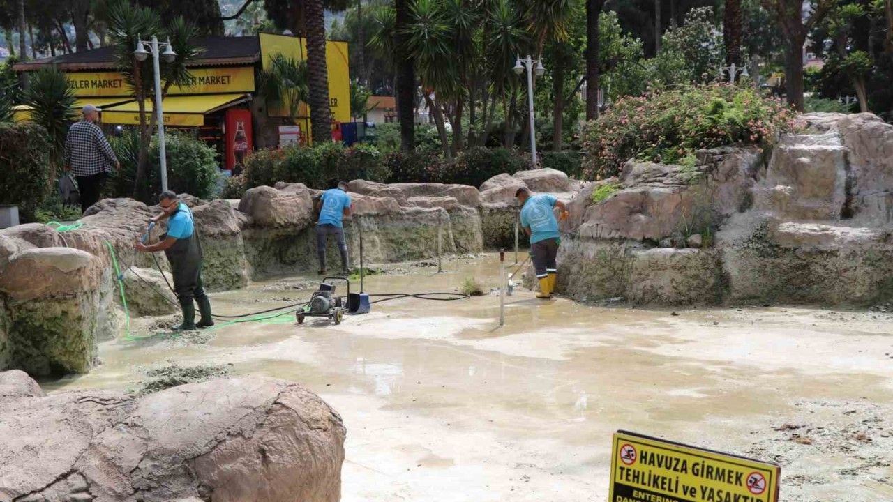 Alanya Belediyesi Park ve Bahçeler Müdürlüğü, kent genelindeki parklarda bulunan süs havuzlarında hummalı bir çalışma sürdürüyor. Bakımları yapılan ve yenilenen havuzlar, yaz sezonuna hazırlanıyor.