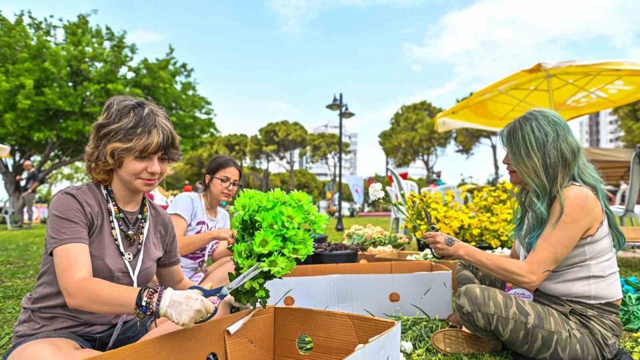 Antalya’da Muratpaşa Belediyesi’nin bu yıl ilk kez düzenlediği Çiçek Desenleri Günleri, Ziya Gökalp Kent Parkı’nda başladı. 11 liseden gençlerin katıldığı etkinlikte, ahşap zeminlere uygulanan desenler çiçeklerle hayat buluyor.