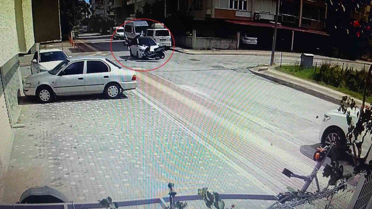 Kaza; Manavgat ilçesi Örnek Mahallesi 1502 sokak üzerinde meydana geldi. Edinilen bilgiye göre, Balıkçılar Çarşısı istikametine gitmekte olan Dilara G.’nin kullandığı 07 AUL 011 plakalı otomobil, Hüseyin Y.’nin kullandığı 07 BSC 372 plakalı motosikletle sokak kesişiminde bulunan kontrolsüz kavşakta çarpıştı. Güvenlik kamerasına saniye saniye yansıyan kazada, çarpmanın şiddetiyle yola fırlayan motosiklet sürücüsü yaralandı. Yaralı motosiklet sürücüsü 112 sağlık ekiplerinin olay yerindeki ilk müdahalesinin ardından ambulansla hastaneye kaldırıldı.