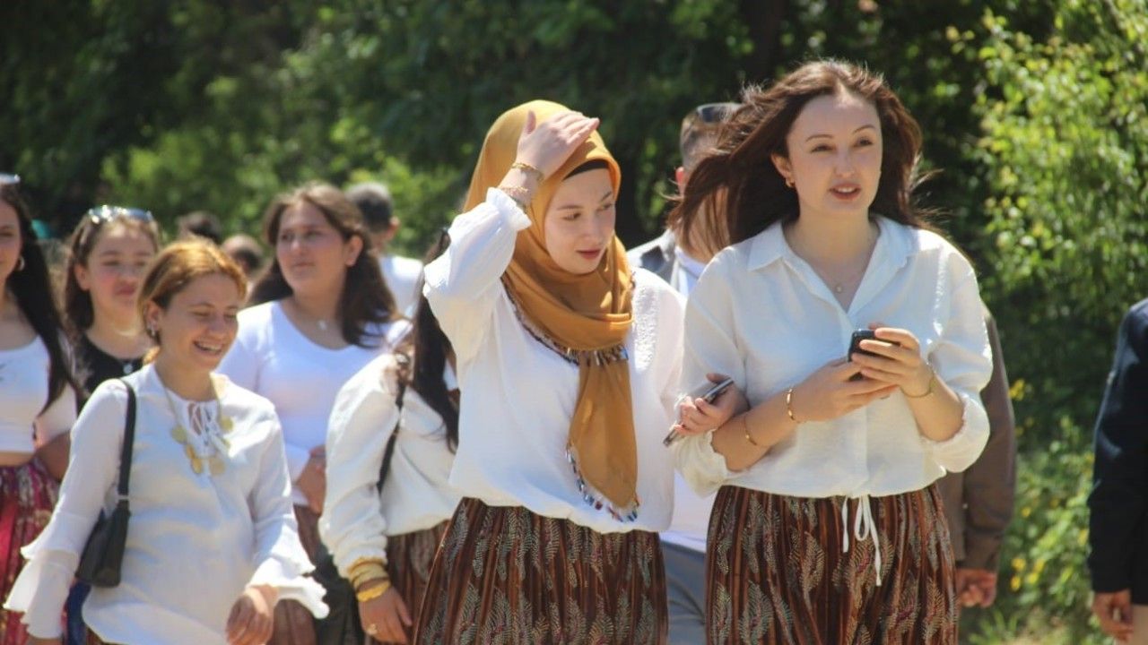 Çanakkale’nin Bayramiç ilçesine bağlı Muratlar köyünde düzenlenen geleneksel köy hayrında genç kızlar ve erkekler, Aşıklar Sokağı’nda bir araya geldi.