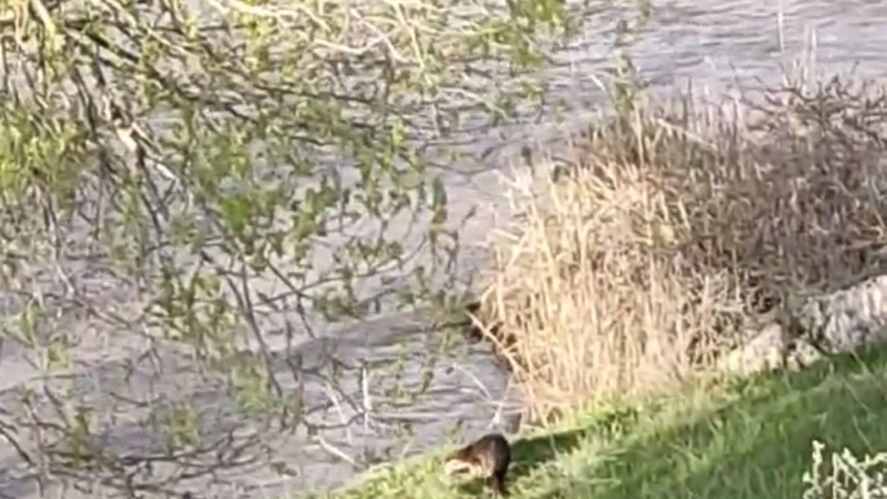 Nesli tehlike altındaki su samuru Erzurum’un Aşkale ilçesinde nehirde balık avlarken görüntülendi.
