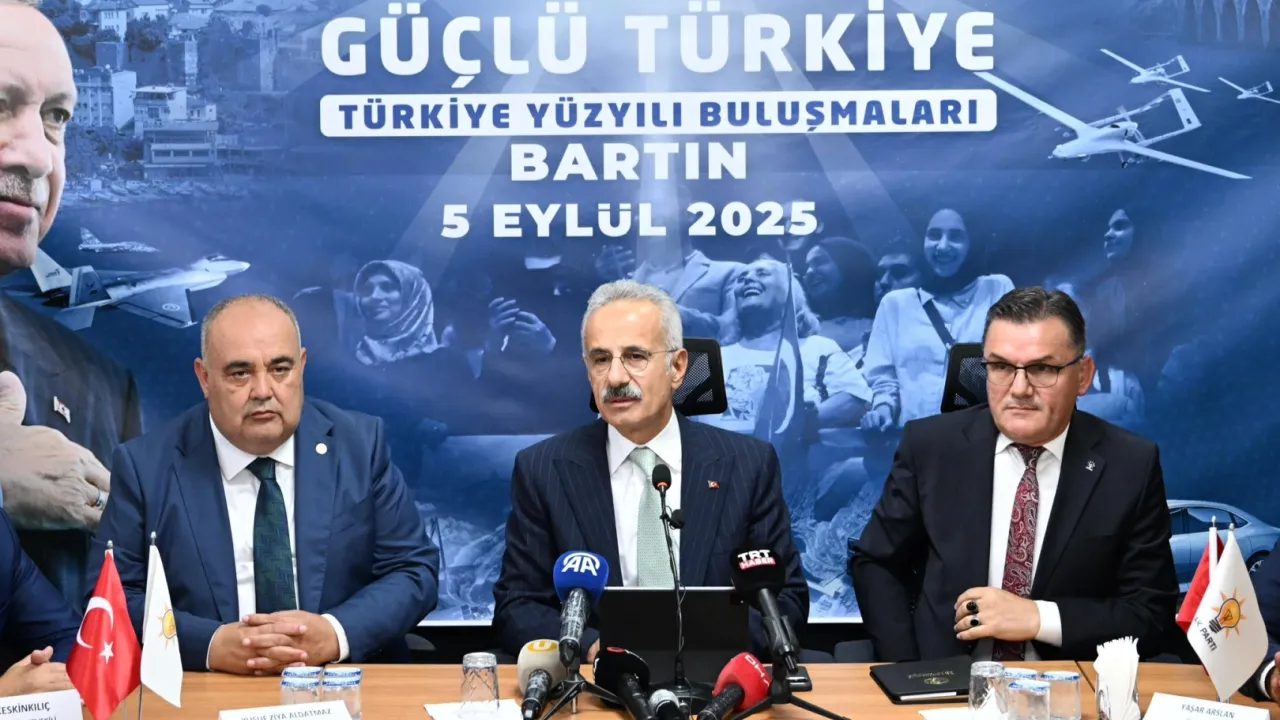 Ulaştırma ve Altyapı Bakanı Abdulkadir Uraloğlu, AK Parti Bartın “Türkiye Yüzyılı Buluşmaları”nda, “Yaparsa AK Parti yapar” diyerek, Bartın’ın ulaşım ve altyapısına 37 milyar TL’lik yatırım yaptıklarını vurguladı. Türkiye’nin masada ve sahada sözü dinlenen bir ülke olduğunu belirten Uraloğlu, yeni anayasa ve “Terörsüz Türkiye” hedeflerini savundu.BARTIN (İGFA) - Ulaştırma ve Altyapı Bakanı Abdulkadir Uraloğlu, AK Parti Bartın “Türkiye Yüzyılı Buluşmaları”nda yaptığı konuşmada, “Yaparsa AK Parti yapar” sloganıyla milletin refahı için çalıştıklarını belirtti.