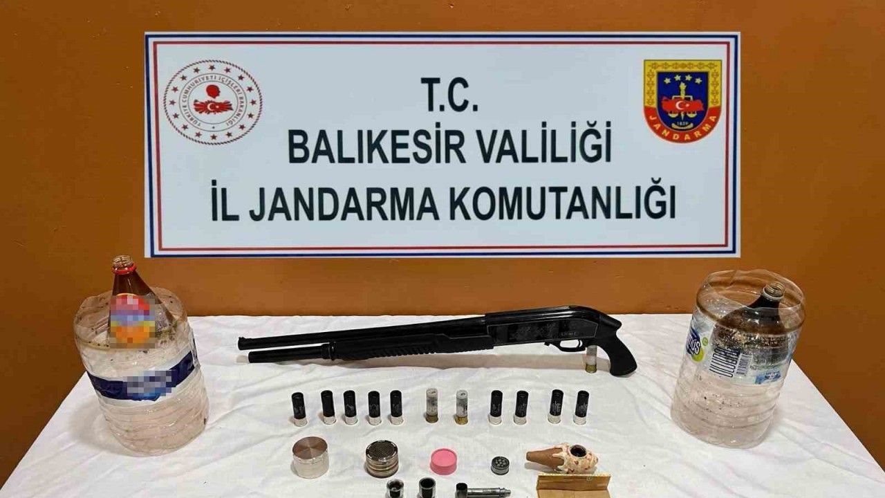Edinilen bilgiye göre, Balıkesir İl Jandarma Komutanlığı KOM Şube Müdürlüğü ve Susurluk İlçe Jandarma Komutanlığı ekiplerince yürütülen istihbari çalışmalar sonucu, Susurluk ilçesi Yeni Mahalle (polis bölgesi) adresinde ikamet eden M.Y. (44) ve A.Y. (37) isimli şahısların uyuşturucu madde bulundurduğu bilgisi alındı. Adli makamlardan alınan arama kararıyla Susurluk İlçe Jandarma Komutanlığı, KOM Şube Müdürlüğü ve uyuşturucu madde arama köpeği ile birlikte şüphelilere ait bir ikamet ile Kalfaköy Mahallesi’ndeki bir bağ evinde arama yapıldı. Yapılan aramalarda, 130 gram kubar esrar, 62 adet Lyrca sentetik hap, 5 gram kenevir tohumu, 4 adet kenevir öğütme aparatı, 5 adet uyuşturucu madde kullanma aparatı, 1 adet av tüfeği, 12 adet av tüfeği fişeği ve 2 adet cep telefonu ele geçirildi.