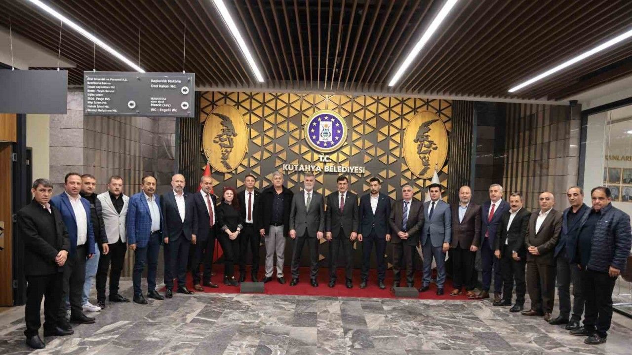 Kütahya Belediye Başkanı Eyüp Kahveci, Türkiye’nin farklı şehirlerinden gelen özel halk otobüsleri temsilcilerini belediyede ağırladı. Tüm Özel Halk Otobüsleri Birliği (TÖHOB) Başkanı Ercan Soydaş başta olmak üzere İstanbul, Ankara, Kayseri, Isparta, Fethiye, Bitlis, Kırşehir, Düzce, Manisa, Kahramanmaraş, Siirt ve Gaziantep Özel Halk Otobüsleri Kooperatif ve Oda başkanları ile Kütahya Özel Halk Otobüsleri Kooperatifi Başkanı Mestan Kocaadam, Başkan Kahveci ile bir araya geldi.