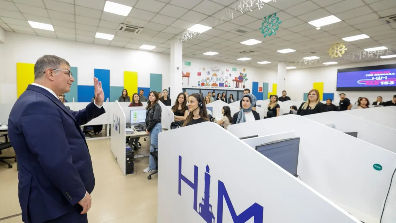 Başkan Tugay, günde bin, bayram dönemlerinde 3 bin çağrı alan Sosyal Yardımlar Hattı ekibiyle de sohbet etti.