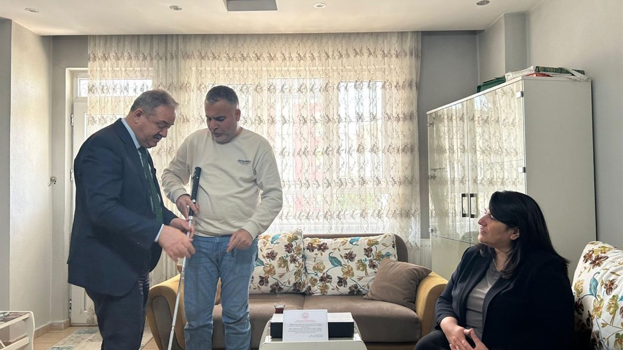Şırnak’ta katıldığı operasyonda bomba patlaması neticesinde her iki gözünü kaybetmesiyle gazi olan Abdulhakim Öztürk’e Aile ve Sosyal Hizmetler Bakanlığı tarafından gönderilen akıllı baston hediye edildi.