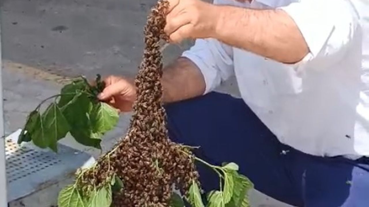 Vatandaşların meraklı bakışları altında arıları toplayan Altun, yaptığı çalışma ile paniğe son verdi. Herhangi bir yaralanmanın yaşanmadığı panik anları, çevredeki vatandaşlar tarafından cep telefonlarıyla kaydedildi.