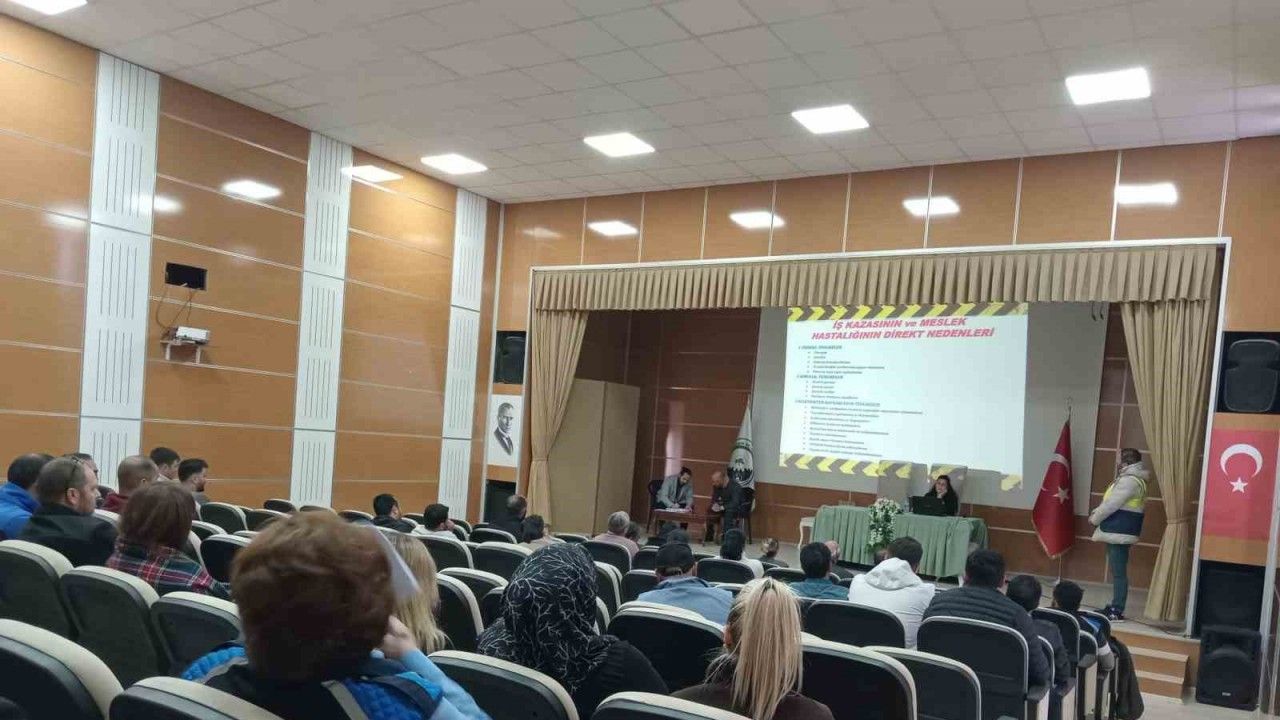 Konferans Salonu’nda yapılan ve 1 saat süren "İş Sağlığı ve Güvenliği" başlıklı eğitim toplantısına belediye birim müdürleri ile çalışanları katıldı.
