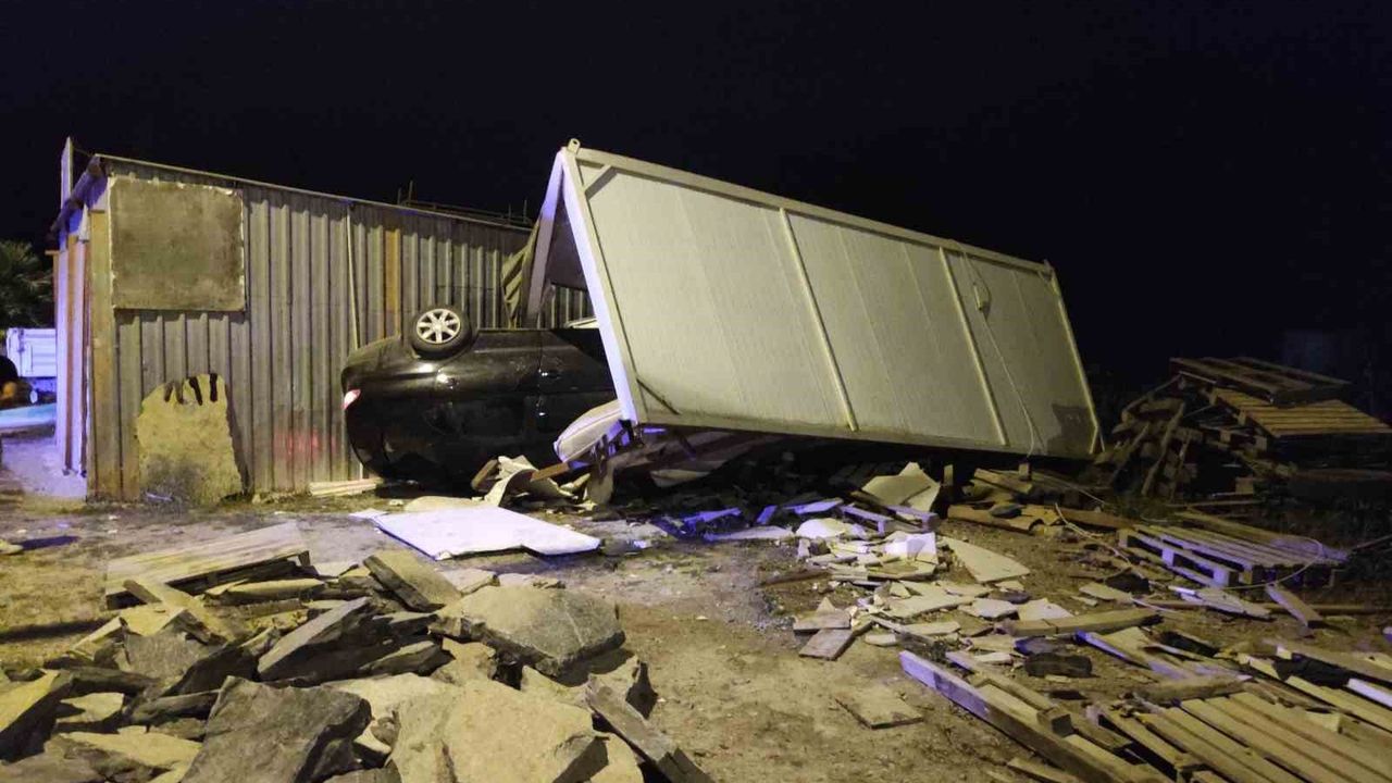 Muğla’nın Bodrum ilçesine bağlı Yalıkavak Mahallesi’nde kontrolden çıkan otomobilin prefabrik konteynere çarpması sonucu meydana gelen kazada 1’i sürücü, 2’si konteyner içinde bulunan işçi olmak üzere 3 kişi yaralandı.