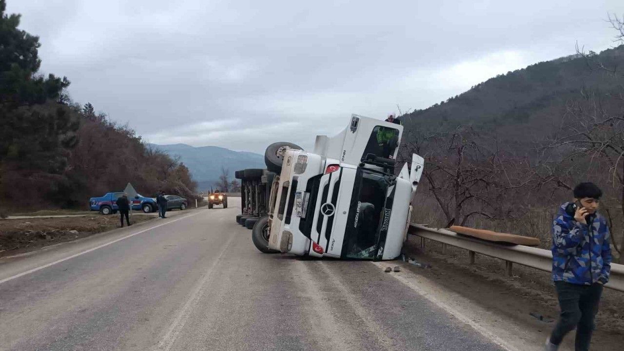Kaza, Mudurnu-Akyazı karayolunda meydana geldi. Edinilen bilgiye göre, Osman Y. idaresindeki 06 PSP 40 plakalı kömür yüklü tır, sürücünün direksiyon hakimiyetini kaybetmesi sonucu devrildi. Kaza esnasında karşı şeritten gelen Barış S. idaresindeki 34 YE 517 plakalı otomobil ise bariyerlere çarptı. Kazalar nedeniyle bölgede trafik bir süre kontrollü olarak sağlandı. Araçların kaldırılmasının ardından trafik tekrar normale döndü.