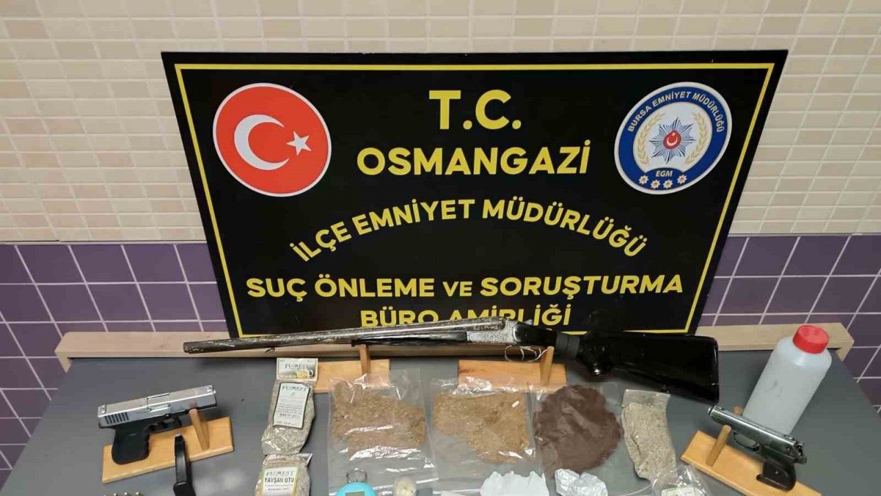 Osmangazi İlçe Emniyet Müdürlüğü Osmangazi Suç Önleme ve Soruşturma Büro Amirliği ekipleri, bir süredir peşinde olduğu uyuşturucu tacirlerine yönelik operasyon düzenledi. Yapılan operasyonda 6 şüpheli gözaltına alınırken, şahısları evlerinde yapılan aramada 1 adet hassas terazi, 1 adet çifte tüfek, 2 adet tabanca, 16 bin lira nakit para, 8 adet cep telefonu ve 512 gram uyuşturucu madde ele geçirdi. Şüphelilerin emniyetteki işlemlerinin sürdüğü öğrenildi.