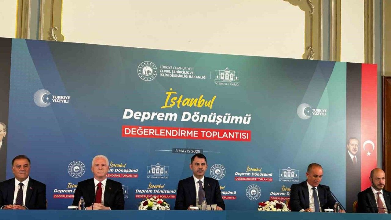 Deprem Dönüşümü Değerlendirme Toplantısı Çevre Şehircilik ve İklim Değişikliği Bakanı Murat Kurum başkanlığında İstanbul Valilik binasında gerçekleştirildi. Toplantıya Çevre Şehircilik ve İklim Değişikliği Bakan Yardımcısı Ömer Bulut, İstanbul Valisi Davut Gül, TOKİ Başkanı Levent Sungur, İBB Başkan Vekili Nuri Aslan, İBB Genel Sekreteri Volkan Demir, vali yardımcıları, 39 ilçenin belediye başkanları da katıldı.