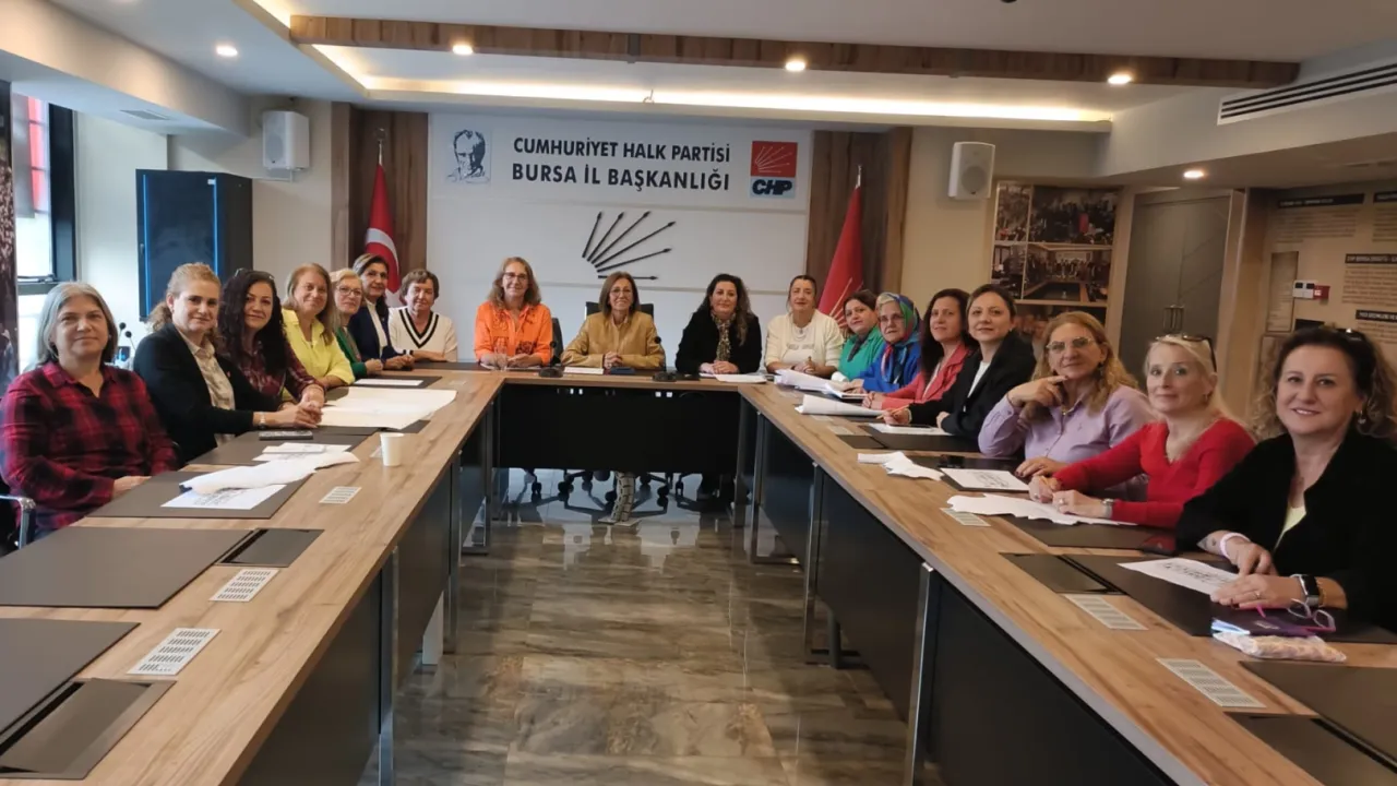 CHP Bursa İl Kadın Kolları Başkanlığı, İl Başkanlığında yaptığı basın açıklamasına İl Kadın Kolları Başkanı Nigar Bölüker, Kadın Kolları MYK Üyesi Fatma Özgür, İl Kadın Kolları Yöneticileri ve İlçe Kadın Kolları Başkanları katıldı.