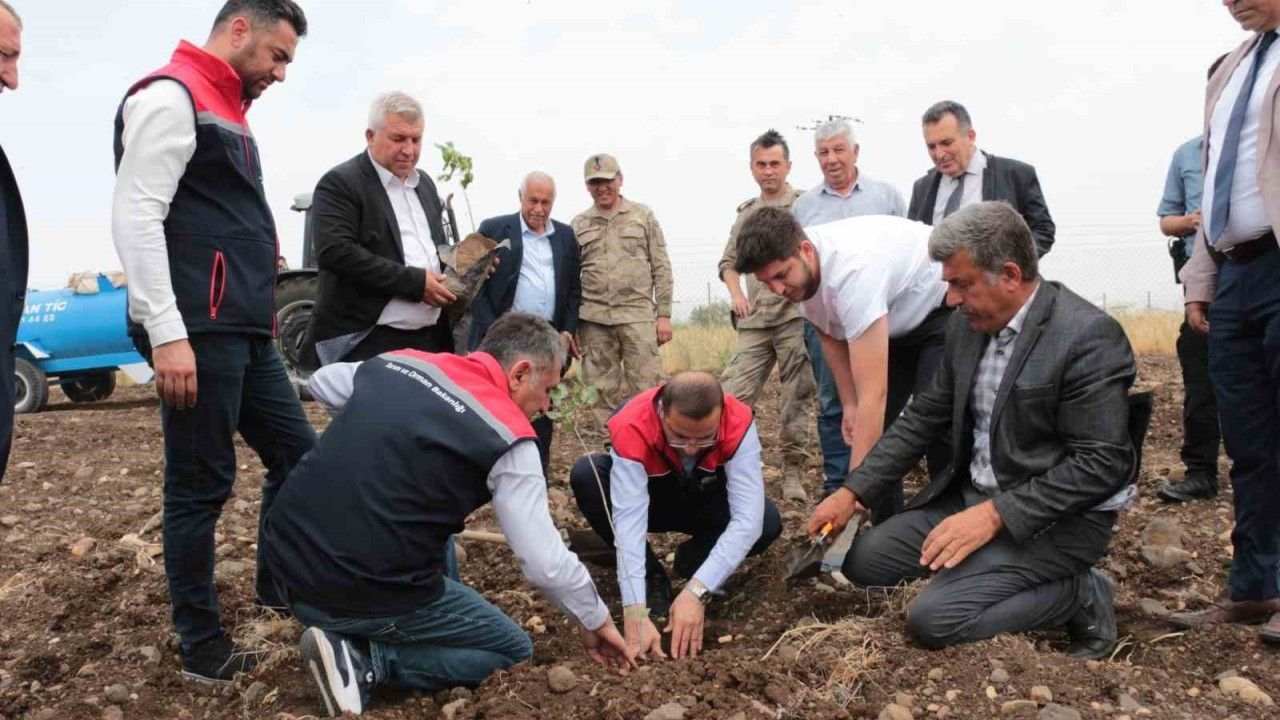 Sanayi ve Teknoloji Bakanlığı Güneydoğu Anadolu Projesi (GAP) Bölge Kalkınma İdaresi Başkanlığı, İlçe Tarım ve Orman Müdürlüğü’nce yürütülen 2.5 milyon TL tutarında badem ve fıstık yetiştiriciliği geliştirilmesi için 50 çiftçiye fidanları dağıtıldı. İlçe Kaymakamı Ahmet Vezir Baycar ve beraberindeki kurum müdürleri, fidanların dikildiği alanı inceledi.