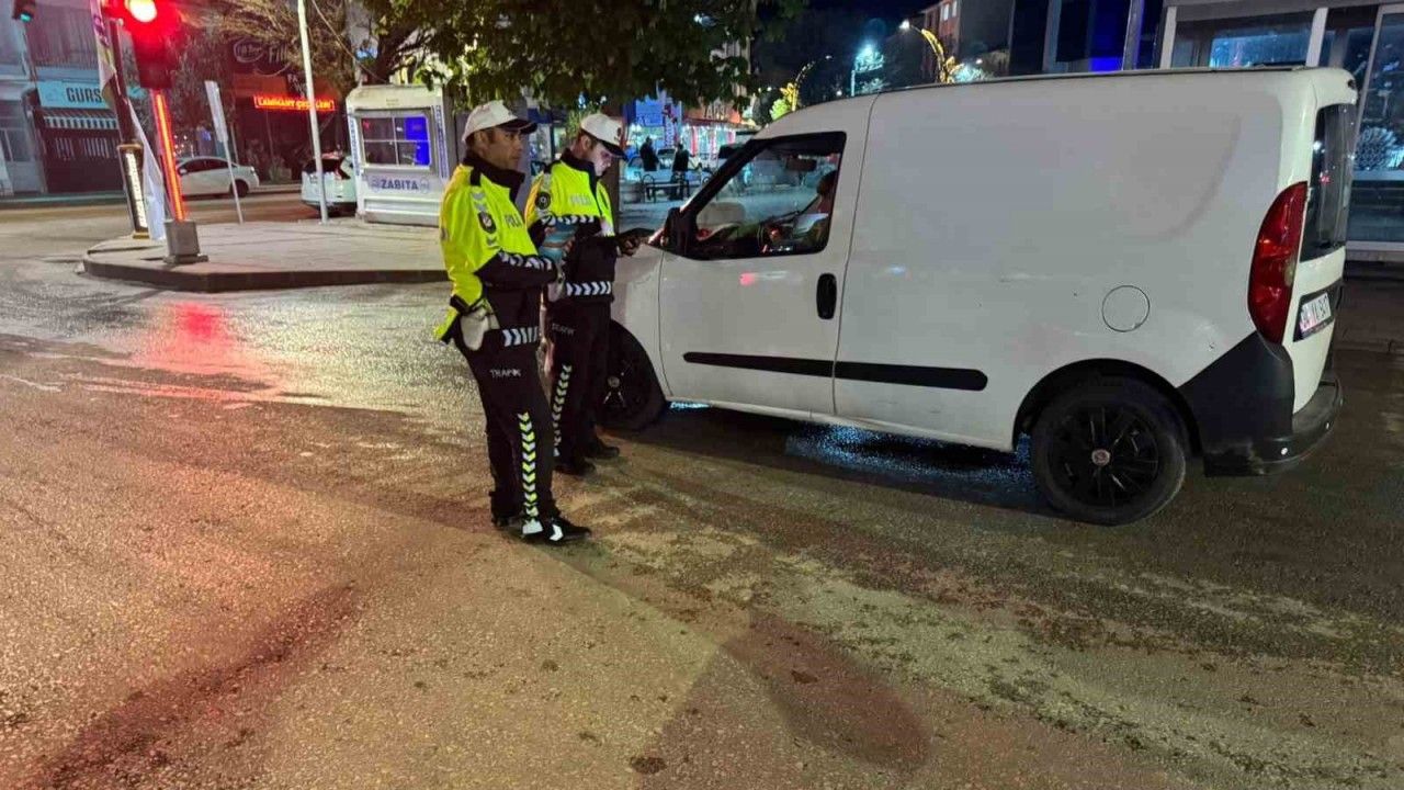 Çorum’un Alaca ilçesinde polis ekipleri, emniyet kemeri uygulaması yapıp sürücülere bilgilendirici broşür dağıttı.