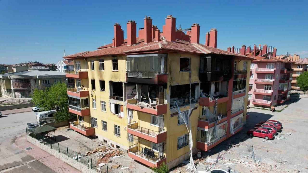 Konya’da apartmanda yaşanan doğalgaz patlaması ve sonrasında çıkan yangında ortaya çıkan hasar, çekilen gündüz görüntülerinde göz önüne serildi. Çevredeki vatandaşlar, deprem oluyor sandıklarını belirtti.