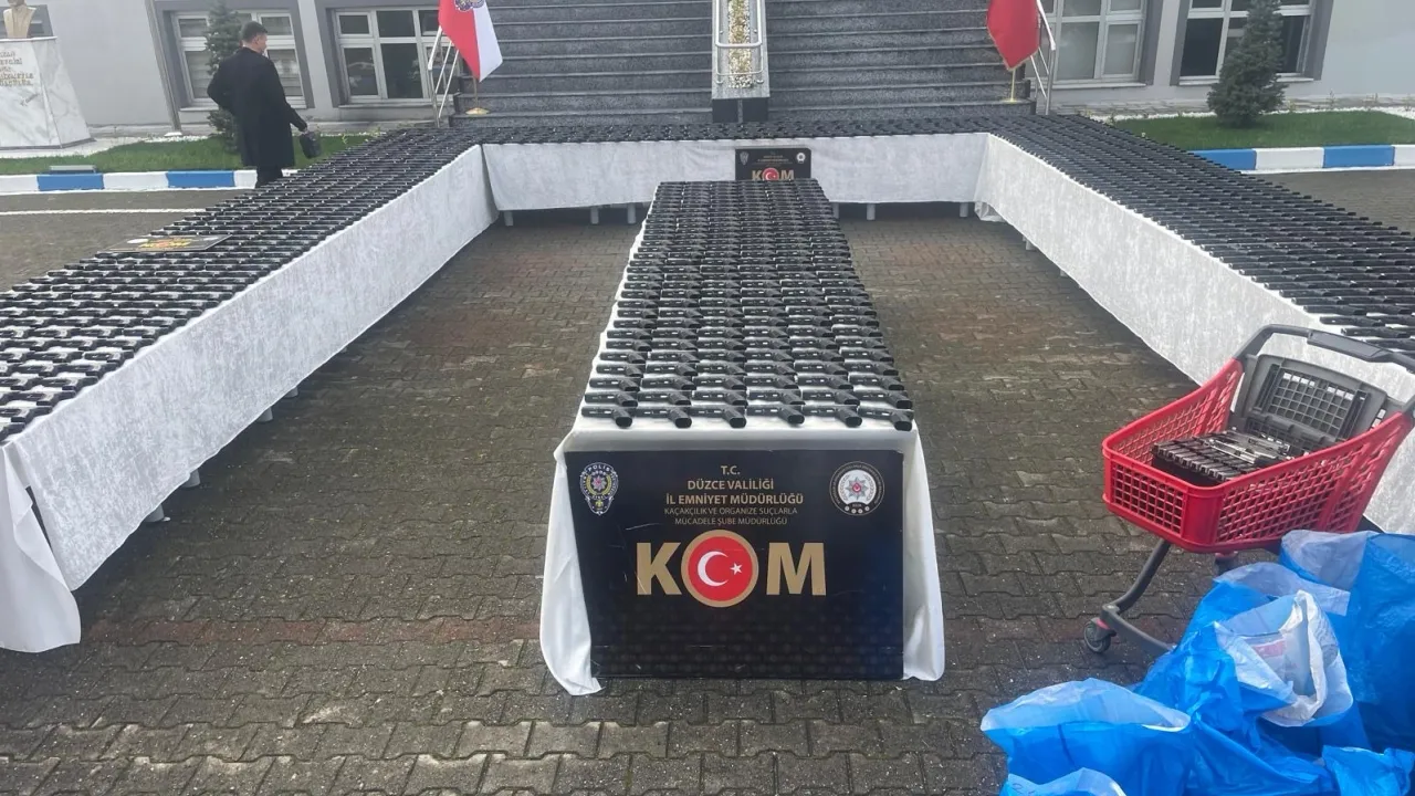 Düzce'de polisin 23 ay süren teknik ve fiziki takibi sonucu düzenlenen operasyonda, bir yolcu otobüsü ve otomobilde yaklaşık 2 bin 100 ruhsatsız tabanca üretilebilecek silah parçaları ele geçirildi.