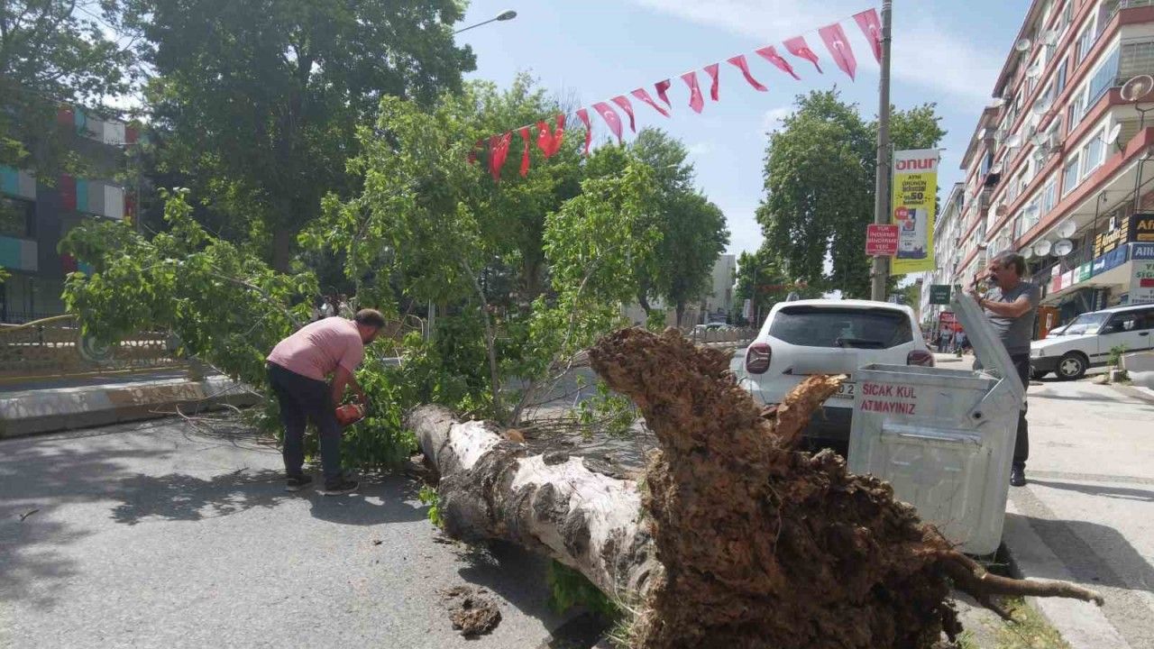 Ağacın yola devrilmesiyle birlikte trafik akışı da durdu. İhbar üzerine olay yerine polis ve belediye ekipleri sevk edildi.