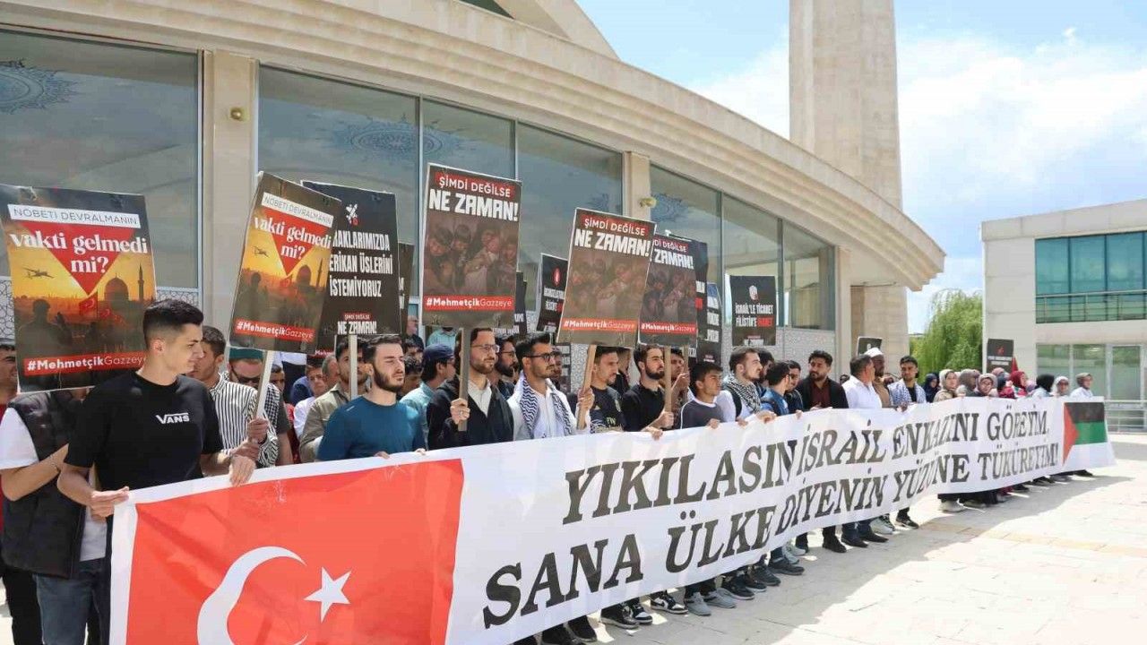 Yürüyüş hakkında bilgi veren öğrencilerden Zeki Kaya Alp, "2 Mayıs 2025 gecesi 150 günü aşkın süre boyunca türlü siyasi ve bürokratik engellemelerle İstanbul’da bekletildikten sonra Filistin’e insani yardım ulaştırmak amacıyla yola çıkan vicdan gemisi, uluslararası sularda bulunduğu esnada Siyonist İsrail tarafından dron saldırısına uğramıştır. 2010 yılında Mavi Marmara Gemisi’ne düzenlenen saldırıda 10 vatandaşımız şehit edilmiş, uluslararası hukuk açıkça çiğnenmiştir. Bugün aynı zihniyetle tekrar sahneye çıkmış ve yine insanlık suskun kalmıştır. Arada geçen 15 yılda değişen tek şey, İsrail’in cüretkarlığının boyutudur. Biliyoruz ki suç cezasız kalırsa zalim daha büyüğünü yapar. Tıpkı bugün olduğu gibi. Silahsız, sivil ve tamamıyla insani yardım amacı taşıyan bu gemiye yönelik saldırı bir savaş suçudur. Bu saldırı sadece yardım gönüllülerine değil, ümmetin iradesine, insanın vicdanına ve İslam dayanışmasına karşı yapılmış bir meydan okumadır" dedi.