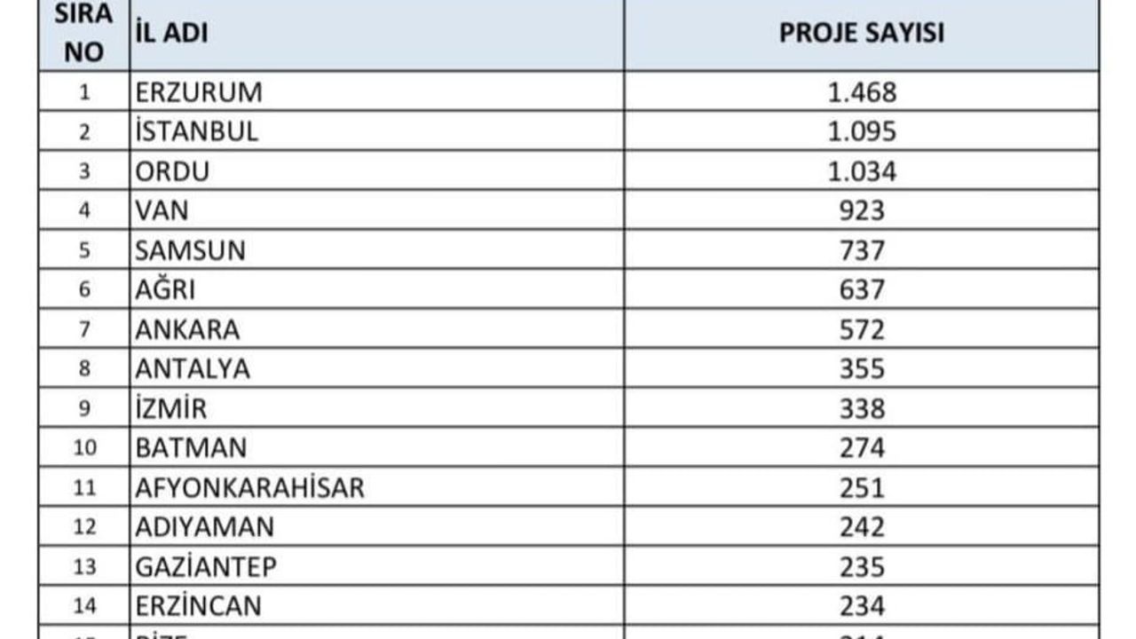 TÜBİTAK tarafından yapılan açıklama göre TÜBİTAK 2204-B 19. Ortaokul Öğrencileri Araştırma Projeleri Yarışması’na Türkiye genelinde 13 bin 918 başvuru yapıldı. Erzurum, bin 468 başvuru ile "Türkiye Birincisi" olurken; Erzurum’u sırasıyla bin 95 başvuruyla İstanbul, bin 34 başvuruyla Ordu, 923 başvuruyla Van ve 737 başvuruyla Samsun izledi.