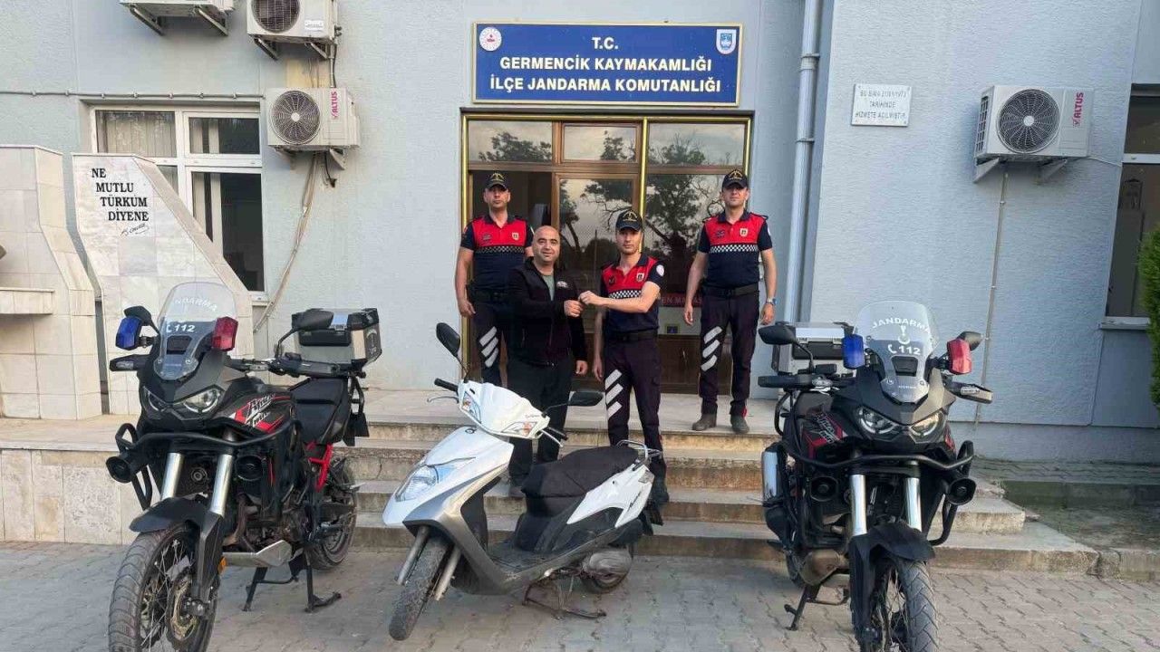 Germencik İlçe Jandarma Komutanlığı Jandarma Motorlu Asayiş Timi tarafından Germencik ilçesi Hıdırbeyli Mahallesi’nde devriye çalışması gerçekleştirildi. Edinilen bilgiye göre, yapılan devriye esnasında ekipler, şüphelendikleri plakasız bir motosikleti durdurdu. S.A. isimli şahsın sürücülüğünü yaptığı plakasız motosikletin yapılan sorgusunda Kuşadası ilçesinden çalındığı tespit edildi. Motosiklet, işlemlerinin ardından ruhsat sahibine teslim edilirken, yakalanıp gözaltına alınan S.A. hakkında başlatılan adli süreç devam ediyor.