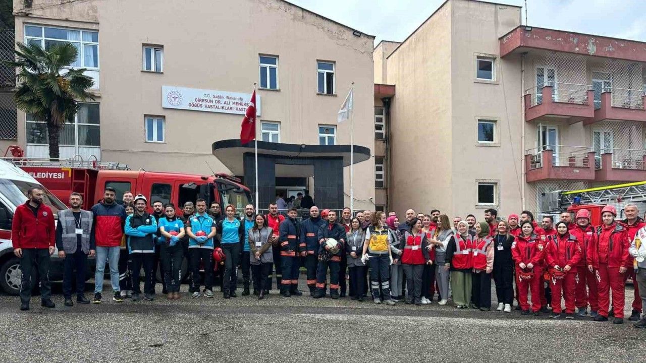 Giresun Ali Menekşe Göğüs Hastanesi’nde Hastane Afet Planı (HAP) kapsamında geniş katılımlı bir tatbikat gerçekleştirildi. Gerçeğini aratmayan tatbikatta senaryo gereği bir deprem meydana geldi, ardından hastanenin eksi birinci katındaki mutfak bölümünde yangın çıktı. Tatbikatta UMKE, AKUT, itfaiye ekipleri ve hastane personeli aktif rol aldı.