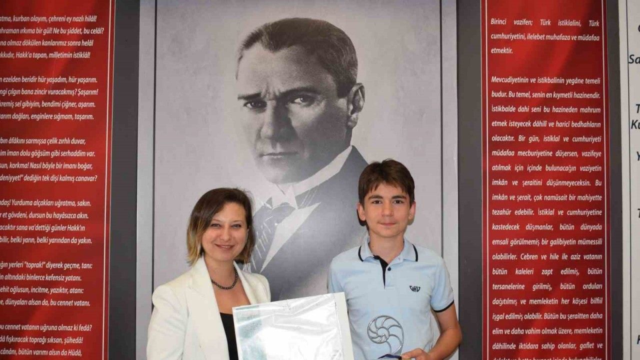 Yarışmada olimpiyat şampiyonluğunu göğüsleyen Faruk Çalışkan’a ödülünü GKV Özel Ortaokul Müdürü Seçil Güldemet takdim edip öğrenciyi kutlayarak başarılarının devamını diledi.