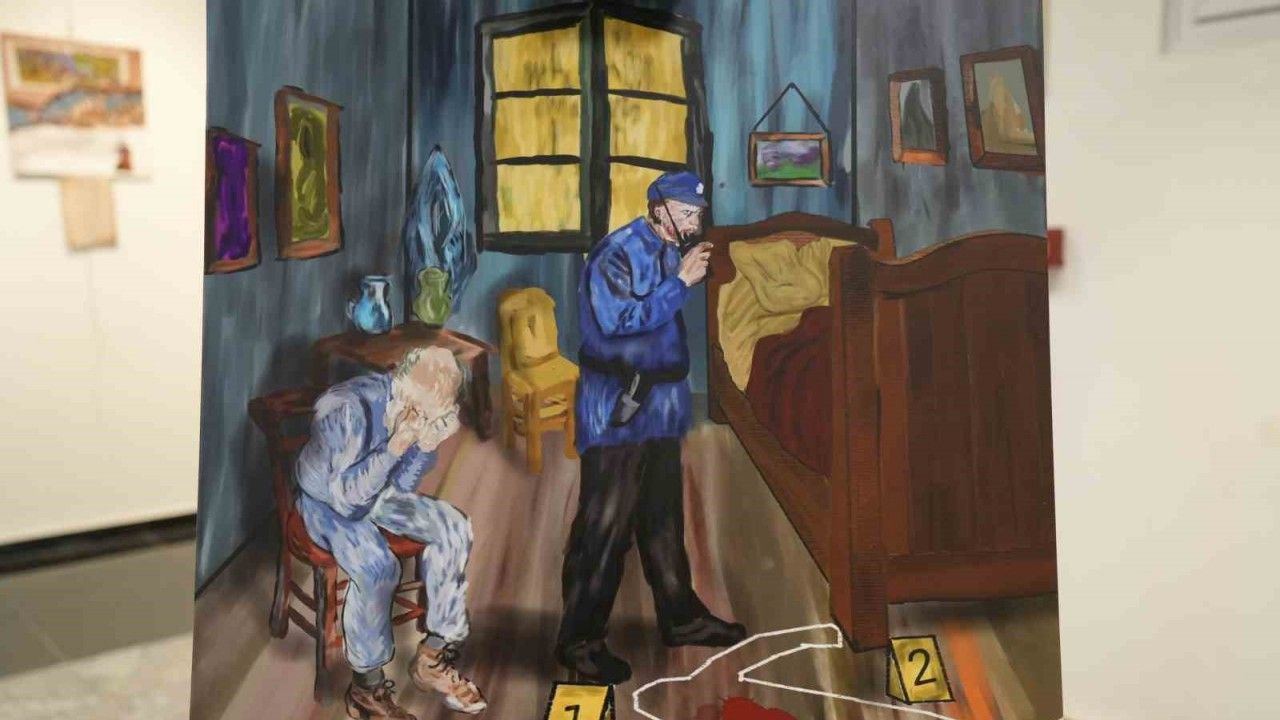 Uzun yıllar boyunca resim çizdiğini ve son 3 senedir profesyonel olarak çalışmalar yaptığını ifade eden polis memuru Bekir Akçagöz, "Polis genellikle toplumda tek yönlü olarak bilinir. Sadece polis kimliğiyle tanınır. Bizim amacımız sadece polis kimliği ile değil, farklı şeyler de yapabildiğini göstermek. Daha derinliği, daha estetik kaygısı olduğuna değinmek. Diğer polis arkadaşlarımıza emsal teşkil etmek istedik. Sergide benim yağlı boya, kuru fırça çizimlerim var. Tükenmez kalem çizimlerim var. Diğer polis arkadaşımın dijital çizimleri var. Minyatür çalışıyor. Modern sanatı ve dijital sanatı, eski sanatı birleştirmeye çalışıyor. Güzel eserleri var onun da. Ben küçüklüğümden beri resim çiziyorum. Ama bunu profesyonel denilecek seviyeye yaklaşık 3 yıl önce getirdim. Polislikten kalan boş zamanlarda sanatla uğraşabiliyoruz, çizim yapabiliyoruz" dedi.