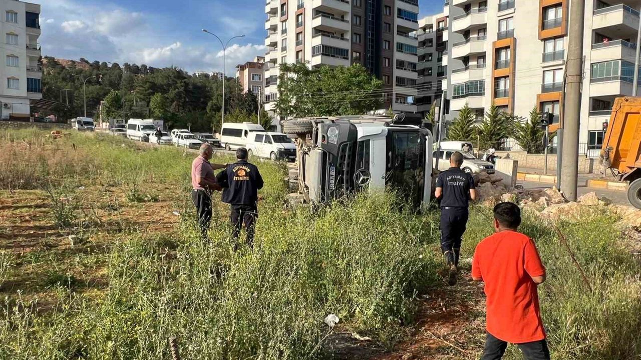 Adıyaman’da freni patladığı iddia edilen hafriyat yüklü kamyonun devrilmesi sonucu 1 kişi yaralandı.
