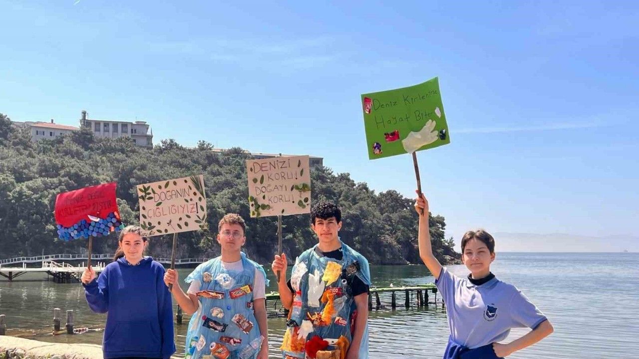 Heybeliada Anadolu Lisesi öğrencileri, çevre kirliliğine dikkat çekmek için yürüyüş düzenledi; pankartlar taşıdı, sahilde temizlik yaptı.