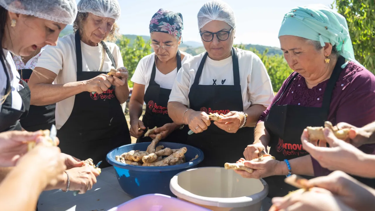 Yakaköy’de zencefil reçeli, Çamiçi Köyü’nde domates reçeli uygulamalı olarak üretildi. Festivalde kozalaktan ıhlamura kadar farklı reçel çeşitleri köylerde kazanlarda kaynarken, kursiyerler öğrendiklerini festivalde İzmirlilerle paylaşacak.