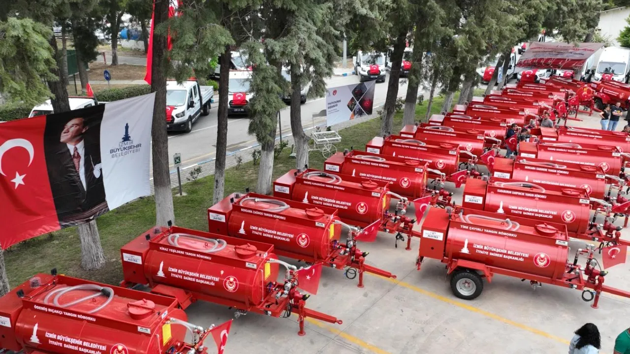 Orman köylerinde yangınlara erken müdahale için 125 yangın tankeri ve afetlerde kullanılmak üzere 59 hizmet aracı belediye filosuna katıldı. İzmir Büyükşehir Belediye Başkanı Dr. Cemil Tugay’ın ev sahipliğinde düzenlenen törende, 40 yangın tankeri köylere dağıtıldı. Törene Gaziemir Belediye Başkanı Ünal Işık, Kemalpaşa Belediye Başkanı Mehmet Türkmen, Beydağ Belediye Başkanı Şakir Başaran, itfaiye personeli, muhtarlar ve vatandaşlar katıldı.