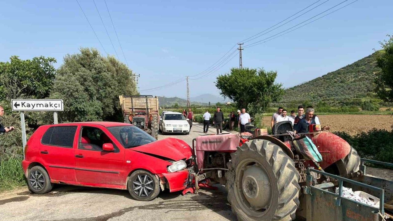 Kaza, saat 16.30 sıralarında Ödemiş ilçesi Beydağ-Tire karayolunda meydana geldi. Edinilen bilgilere göre, 09 ZC 356 plakalı traktör ile tali yoldan anayola çıkmaya çalışan Mehmet Y. (48), anayolda seyir halinde olan Ahmet A. (33) idaresindeki 43 ABT 938 plakalı otomobile çarptı. Çarpışmanın etkisiyle traktörde yolcu olarak bulunan Ganime K. (44), Aysel S. (34), Fatma Y. (59) ve Fatma T. (62) yaralandı.