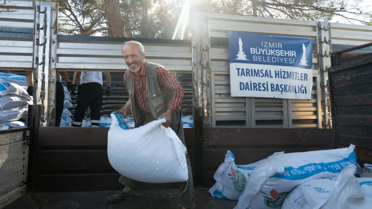 İzmir Büyükşehir Belediyesi haziran ve temmuz aylarındaki orman yangınlarından etkilenen üreticileri yalnız bırakmıyor. Yanan köylerde tarımsal üretimin devamlığı için su deposu desteğinin ardından Ödemiş, Seferihisar, Çeşme ve Aliağa’da 40 tonluk kesif yem dağıtımı yapıldı.