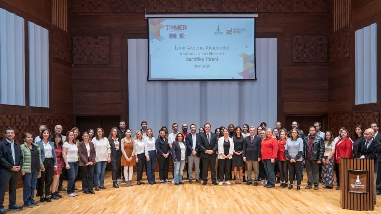 İzmir Büyükşehir Belediyesi bağlı İzmir Akdeniz Akademisi bünyesindeki Akdeniz Dilleri Merkezi'nin, Ankara Üniversitesi TÖMER iş birliğiyle yürüttüğü yabancı dil programlarının sertifika töreni, Ahmed Adnan Saygun Sanat Merkezi'nde düzenlendi.