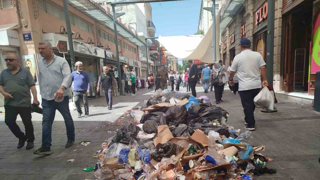 Kemeraltı’nda sokak ortasındaki çöpleri gören turistler, şaşkınlıklarını gizleyemezken, esnaf çöplerin üzerini naylon ile kapattı.