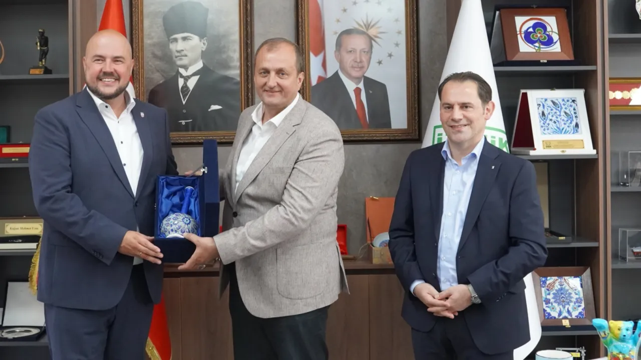 BURSA (İGFA) - Spandau Belediye Başkanı Frank Bewing, Berlin Eyalet Parlamentosu Temsilciler Meclisi Üyesi Dr. Ersin Nas, bürokratlar ve iş insanlarından oluşan heyet, İznik Belediye Başkanı Kağan Mehmet Usta tarafından belediye binasında karşılandı. Gerçekleşen buluşmada, iki şehir arasındaki dostane ilişkilerin güçlendirilmesi ve geleceğe yönelik ortak projelerin geliştirilmesi üzerine istişarelerde bulunuldu.