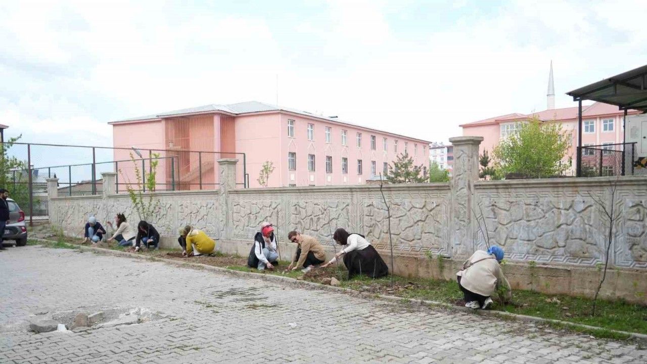 Muş İl Milli Eğitim Müdürlüğü bünyesindeki kadın öğretmenler, doğaya nefes olmak için lojmanın etrafını ağaçlandırdılar.