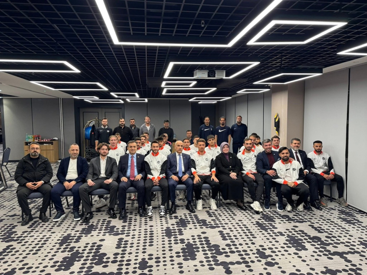 Tural ŞAHBAZLI / KAHRAMANMARAŞ (İGFA) - Ankara Demirspor karşılaşması öncesinde takımın konakladığı otelde gerçekleşen ziyarette heyet, kulüp yöneticileri ve sporcularla bir araya geldi. Milletvekilleri, zorlu maç öncesinde takıma başarı dileklerini ileterek moral verdi.