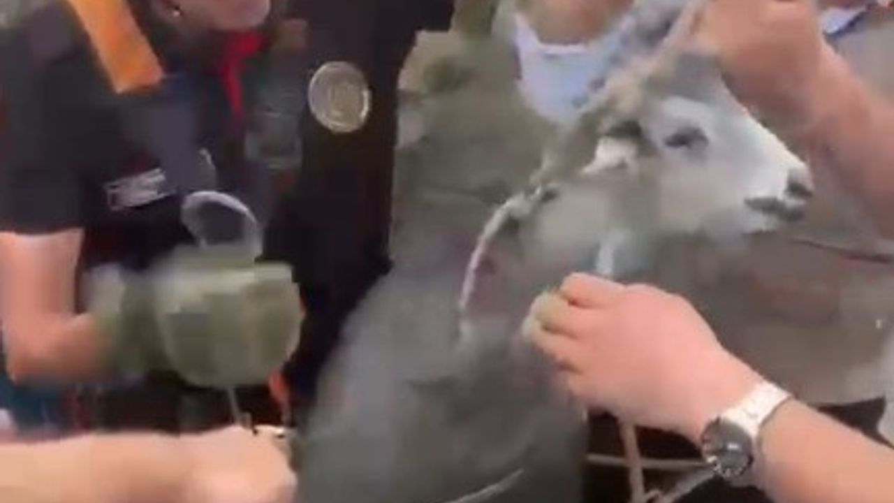 Kahramanmaraş’ta drenaj kuyusuna düşen keçi itfaiye ekiplerince kurtarıldı.
