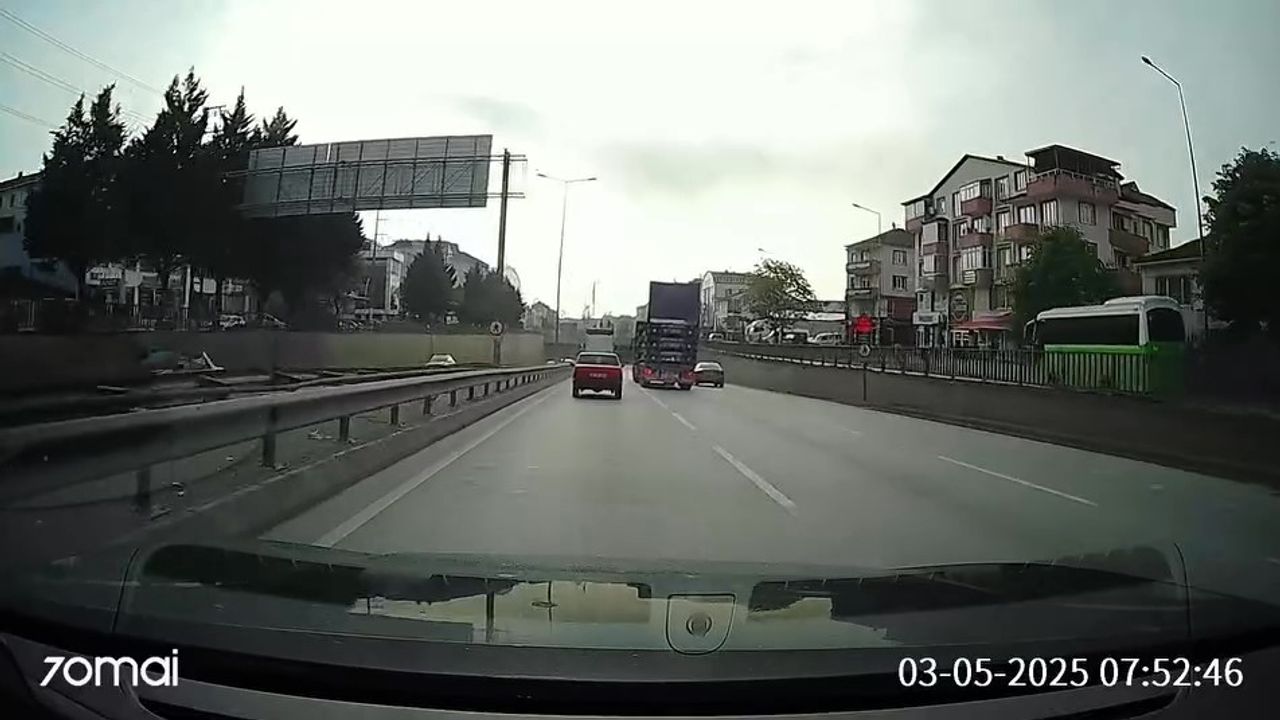 Kocaeli’de kapağı açık halde seyir halinde olan kamyon tehlike saçtı. Durumu fark edemeyen sürücü, D100 Karayolu Derince Tüneli’nden geçerken kaza yaptı. Kapağın tünele çarpması ile araç ve tünelde hasar meydana geldi. Çarpmanın şiddetiyle durumu fark eden sürücü aracı sağ şeride çekerek durdurdu. O anlar seyir halinde olan aracın kamerasına yansıdı.