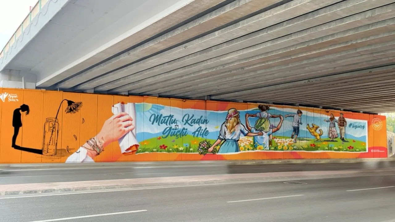 Kocaeli Büyükşehir, 'Aile Yılı' temasıyla kadına yönelik şiddete dikkat çekmek ve toplumsal farkındalığı artırmak amacıyla önemli bir çalışma başlattı. Şehrin yoğun kullanılan güzergâhlarından biri olan Alikahya Stadyum yolu üzerindeki köprü altı duvarları grafiti çalışmaları sonucunda aile temasıyla renklendirildi.