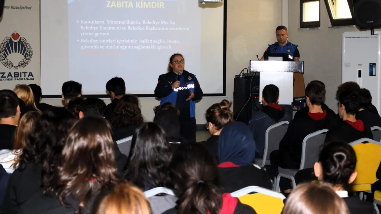 Üniversite öncesinde eğitim gören gençlerin zabıta mesleğiyle tanışmasını da sağlayan eğitimde Büyükşehir zabıta ekipleri kendi mesleklerinin inceliklerini anlattı. Zabıta ekiplerinin anlatımı öğrenciler tarafından büyük ilgiyle dinlendi. Soru-cevap bölümüyle tamamlanan eğitimle öğrencilerin merak ettikleri tüm sorular yanıtlandı.