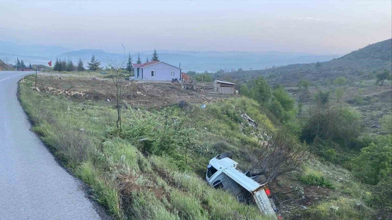 Bilecik’te seyir halinde kontrolden çıkan kamyonet şarampole yuvarlanırken sürücüsü yaralandı.