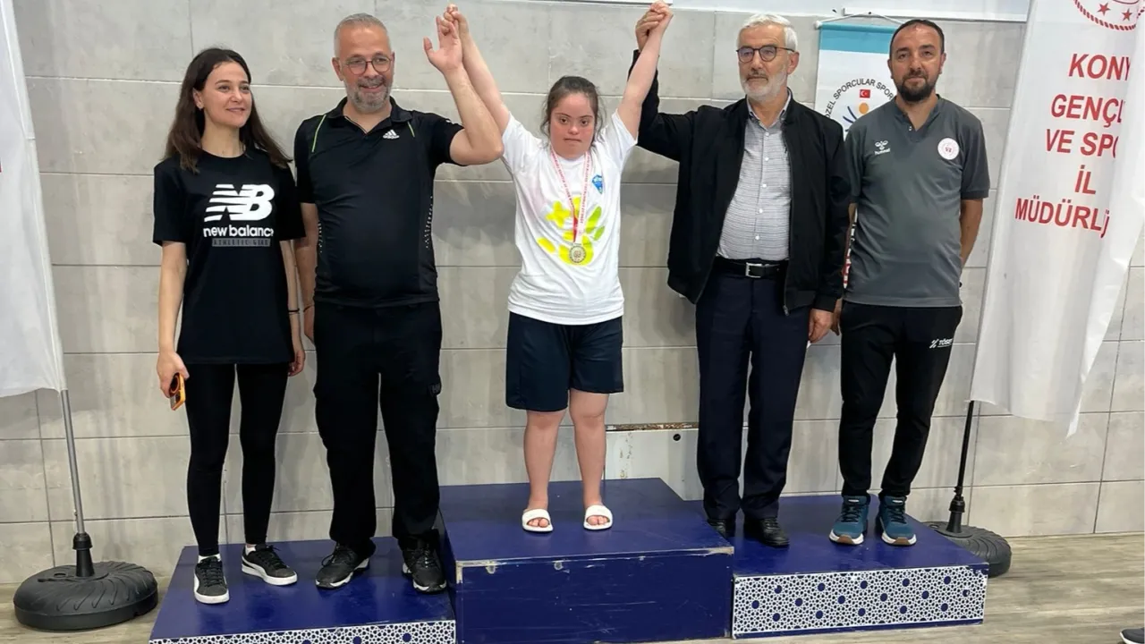 DOSD Meram Spor Kulübü’nün özel sporcuları, ilk kez katılım sağladıkları Konya Özel Sporcular Kulüpler Yüzme İl Şampiyonası’ndan önemli başarılarla döndüler. Toplamda 4 altın ve 1 gümüş madalya kazanarak hem kulüp tarihine geçti.KONYA (İGFA) - Meram Belediyesi tarafından yakın zaman önce kurulan ve tamamı downsendromlu bireylerden oluşan DOSD Meram Spor Kulübü, ilk kez katılım sağladığı Konya Özel Sporcular Kulüpler Yüzme İl Şampiyonası’ndan umut verici başarılarla döndüler.