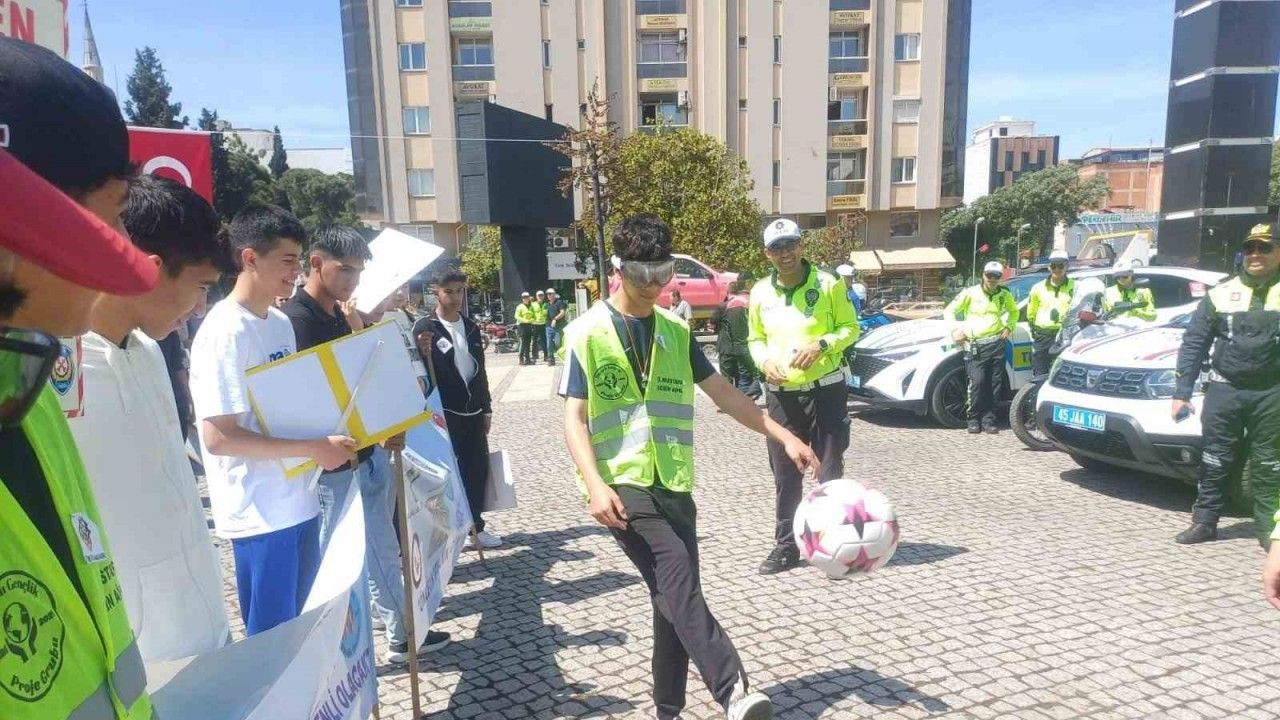 Manisa’nın Salihli ilçesinde düzenlenen trafik haftası kutlama etkinliğinde polis ekipleri, ’Alkol Simülasyon Gözlüğü’ ile alkollü bir kişinin nasıl gördüğünü uygulamalı olarak gösterdi. Alkolün insanı nasıl etkilediğini göstermek için öğrencilere ’alkol simülasyon gözlüğü’ adı verilen gözlükle penaltı kullandırdı.