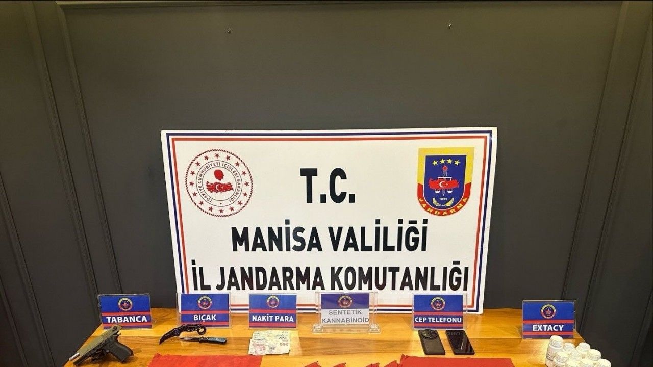 Aramada, 36 adet uyuşturucu hap, bol miktarda A4 kağıdına emdirilmiş sentetik uyuşturucu, 1 adet 9 mm çapında ruhsatsız tabanca, 2 adet sustalı bıçak ile suçtan elde edildiği değerlendirilen 2 bin 700 lira nakit para ele geçirildi.