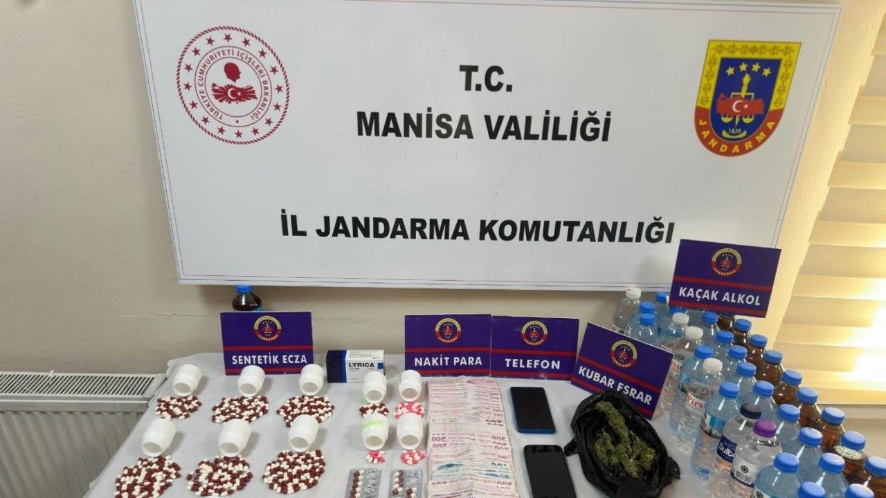 Manisa’nın Alaşehir ilçesinde jandarma ekiplerinin düzenlediği uyuşturucu operasyonunda çok sayıda sentetik ecza hapı, uyuşturucu madde ve kaçak alkol ele geçirildi. Operasyonda 2 şüpheli gözaltına alındı.