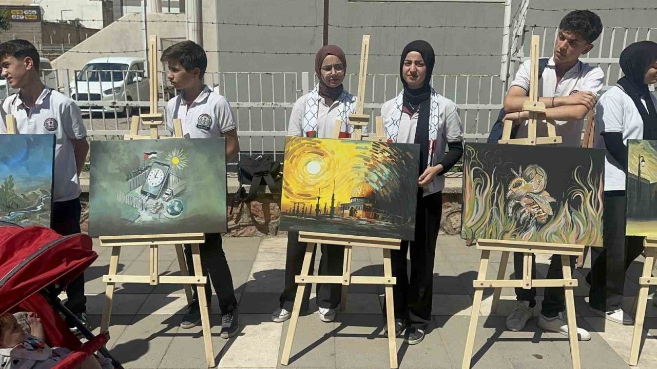Şırnak’ta lise öğrencileri, Gazze’de yaşanan insanlık dramına dikkat çekmek için yaptıkları resimleri sergiledi.